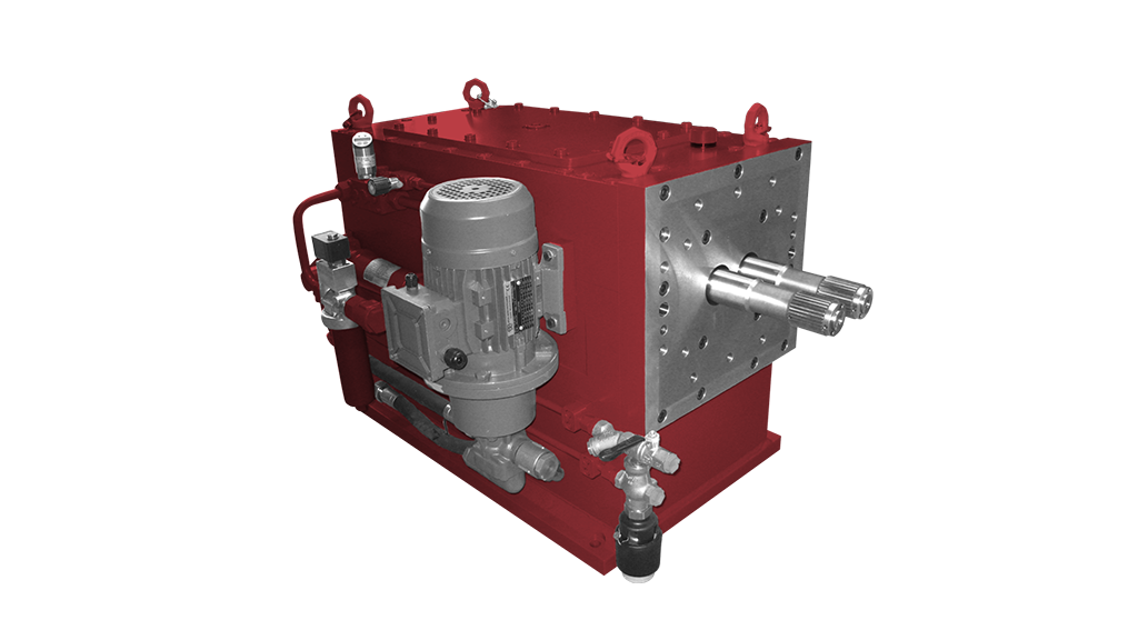 Every twin-screw extruder gearbox is designed to meet the customer’s exact requirements. As a central component of the extruder, the speed of rotation of the screws and the output torque are realized according to your specifications. The twin-screw extruder gearboxes are standardly available with centre distances of between 18.5 mm and 76 mm from RSGetriebe. Other sizes can be custom developed to the customer’s specifications.